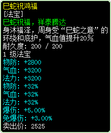 1、身沐福泽,周身受“巳蛇之意”的环绕和庇护,气血值提升20%。